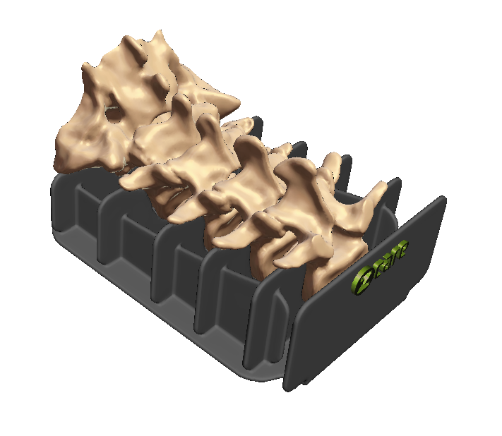 The cervical spine train is a series of simulators designed to replicate the anatomy of the cervical spine, catering to diverse requirements such as enhancing product demonstrations, facilitating the learning of anatomy, and assisting in the placement of pedicle screws.